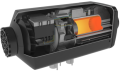 Принцип работы: Отопитель прогоняет через себя холодный воздух, который забирается из салона, а затем отдаёт его уже теплым. Встроенные датчики позволяют устройству работать автономно, самостоятельно включаясь и выключаясь, поддерживая при этом заданный уровень температуры.